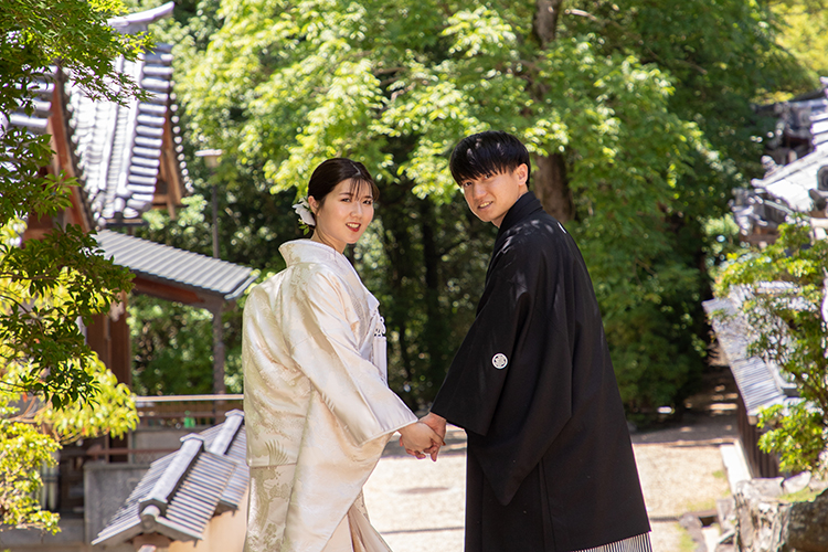 - 結婚式当日のご衣裳をお決めいただきます。春日大社にての神社婚の場合、新婦様は白無垢、新郎様は紋付袴が一般的になります。